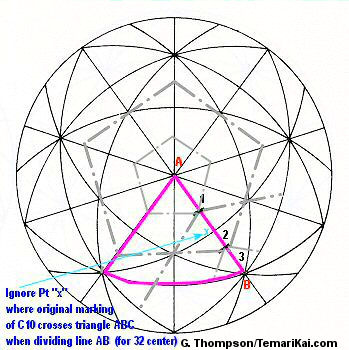 for a 32-face, AB is divided into 3. Focus on the pink triangle, and