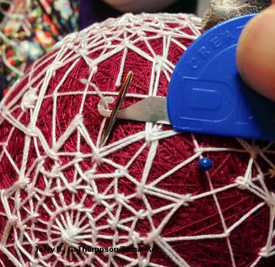 Materials: 32 cm circum mari, wrapped in color of your choice DMC Cebelia Crochet cotton in white Marking thread is same as stitching thread Prepare an 10-Combination Division using Cebelia thread. |